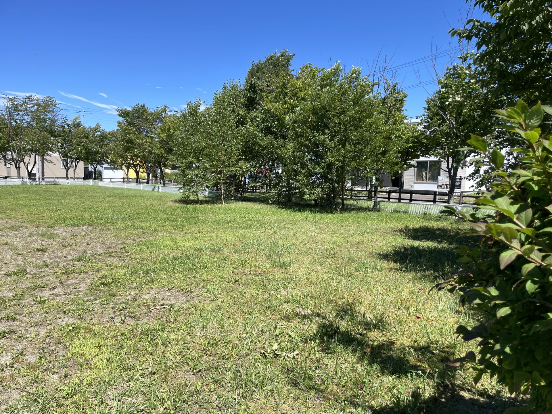 トイレの裏には低い柵と生垣に囲われてた広場があります!