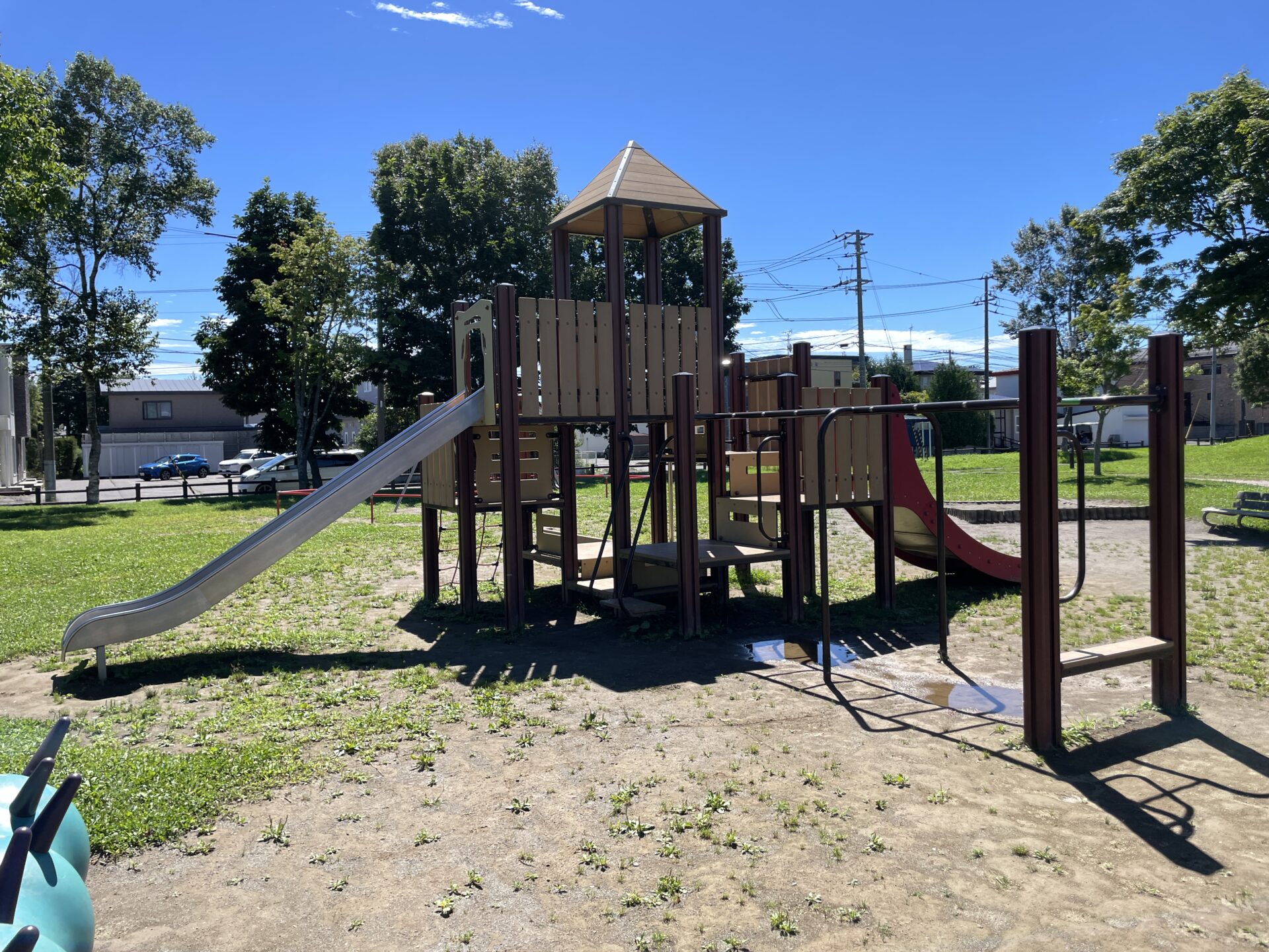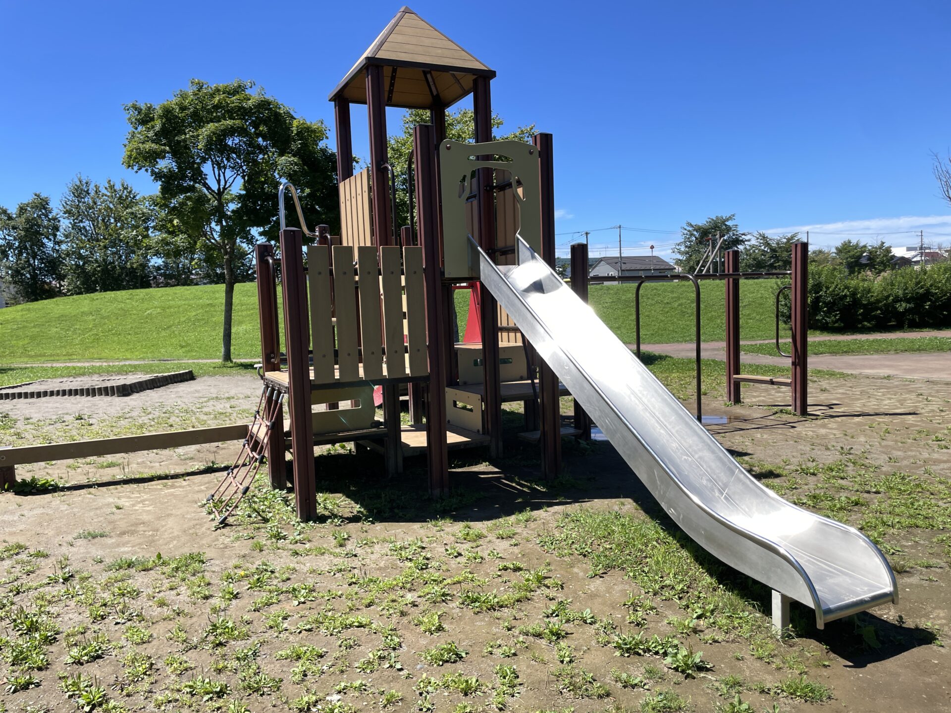 メイン遊具も色々な遊びが出来て、ターザンロープもあり広場も広くとても遊びやすい公園だと思います!