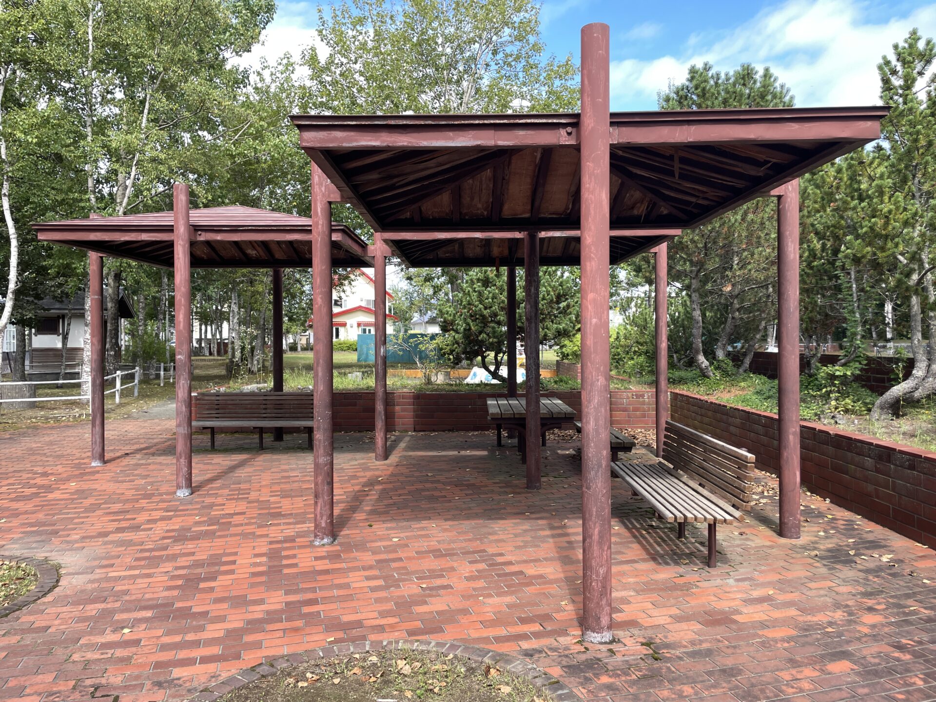 屋根付き休憩所やトイレ・手洗い場もあるのがうれしいポイントですね!