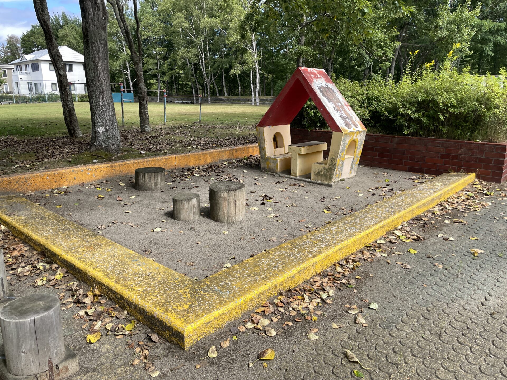 砂場にはおままごと遊びをするのにぴったりな小さなお家があります!