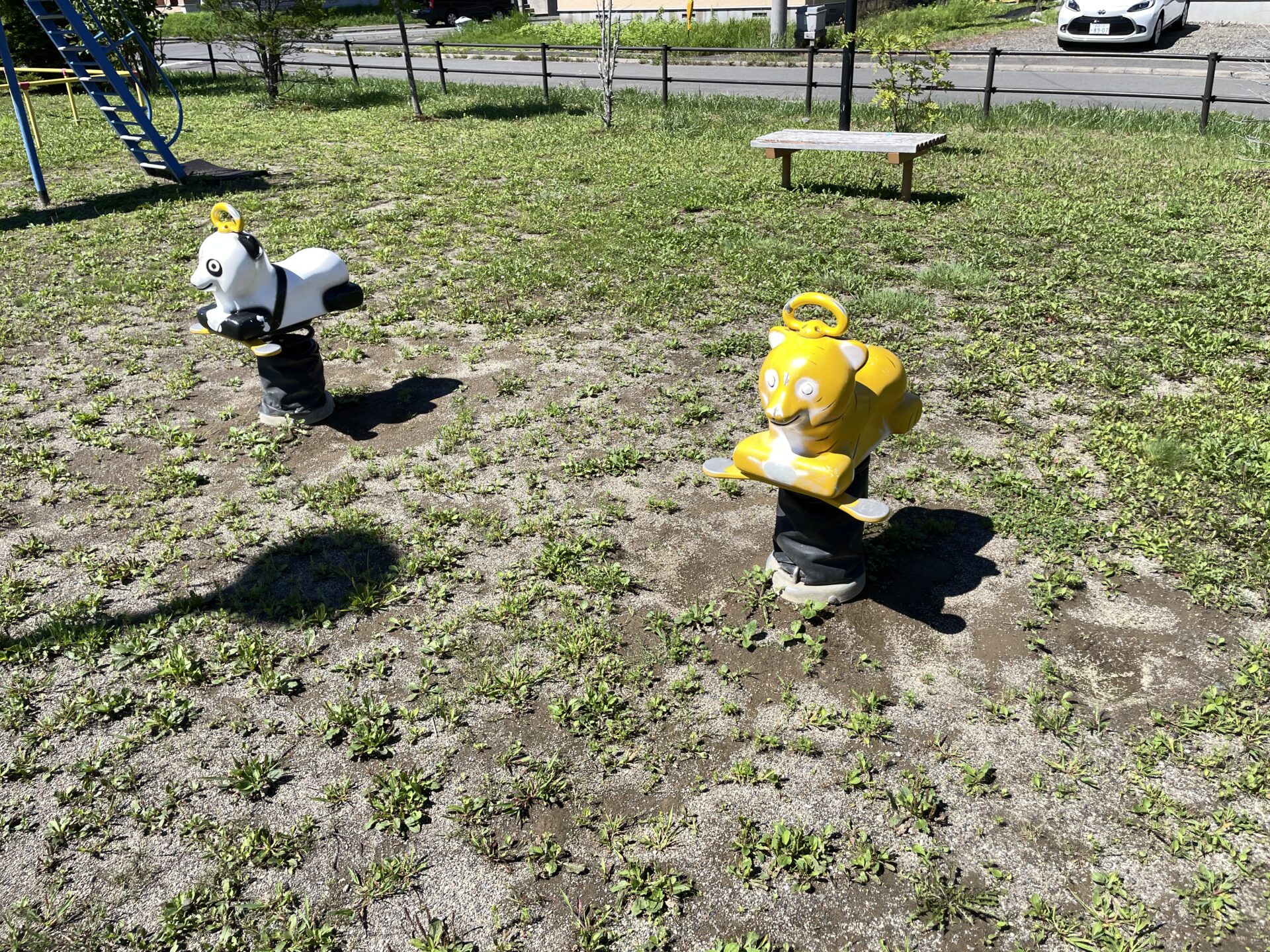 ブランコの周りはしっかり囲われていて、スプリング遊具もあります!